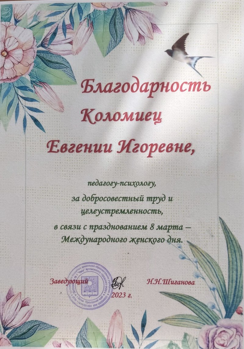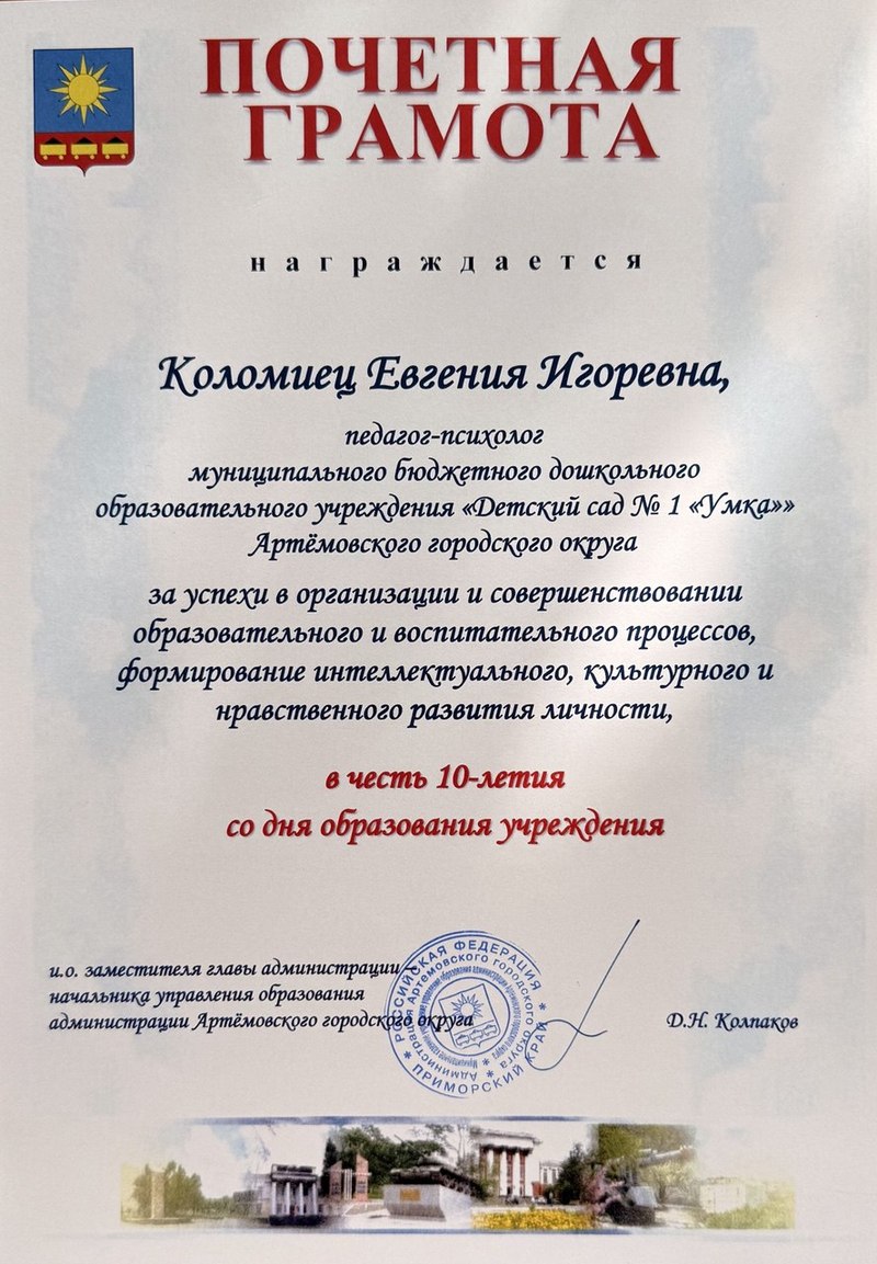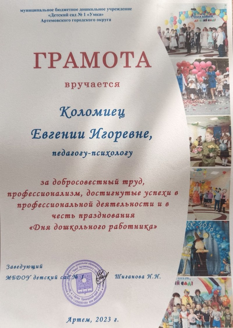 Главная Методическая копилка Интернет-портфолио Коломиец Евгении Игоревны Общие сведения Мои достижения