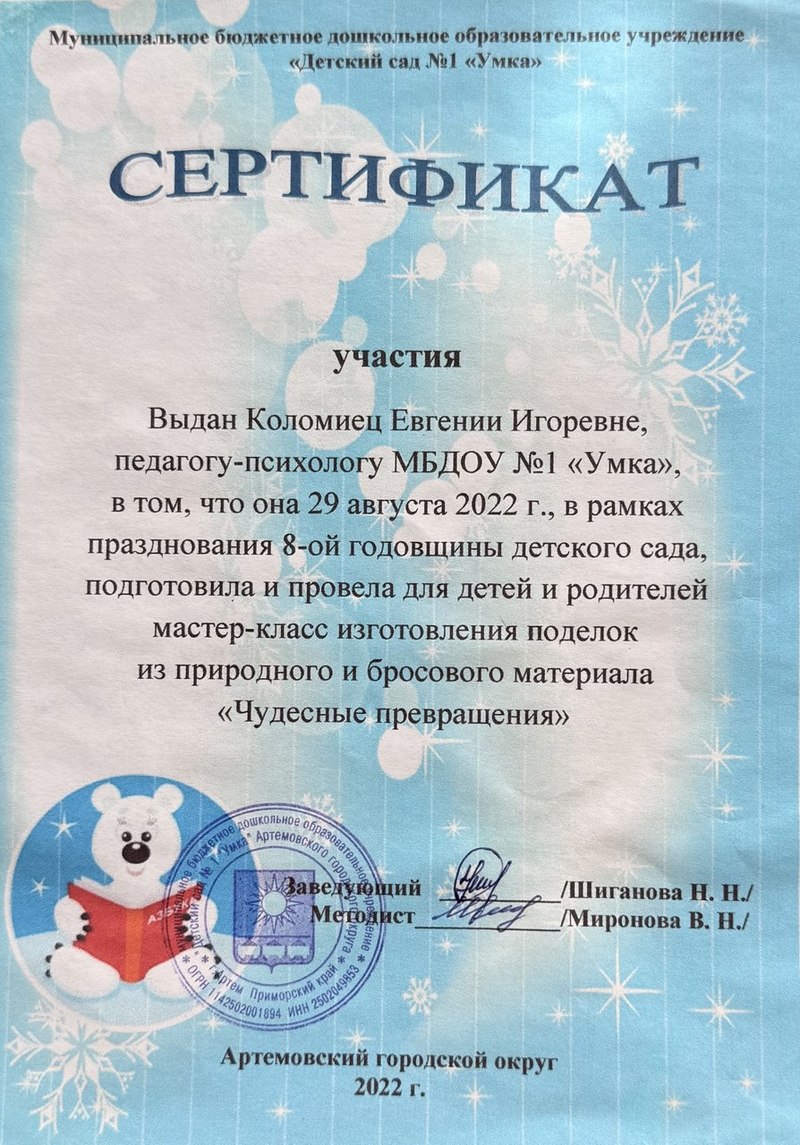 "Детский сад № 1 "УМКА" Артемовского городского округа