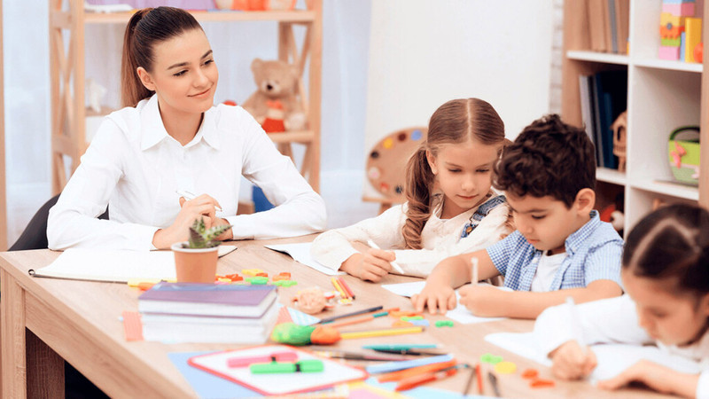 Если ребёнку сложно выполнять задание, то педагог помогает ему в этом.