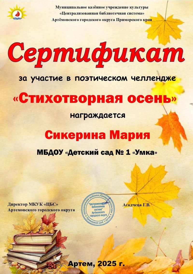 "Детский сад № 1 "УМКА" Артемовского городского округа